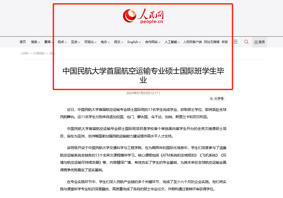 中国民航大学首届航空运输专业硕士国际班项目是学校首个单独面向留学生开办的全英文授课硕士项目,旨在为亚洲、非洲等国家加强民航运输能力建设提供高水平人才支持。