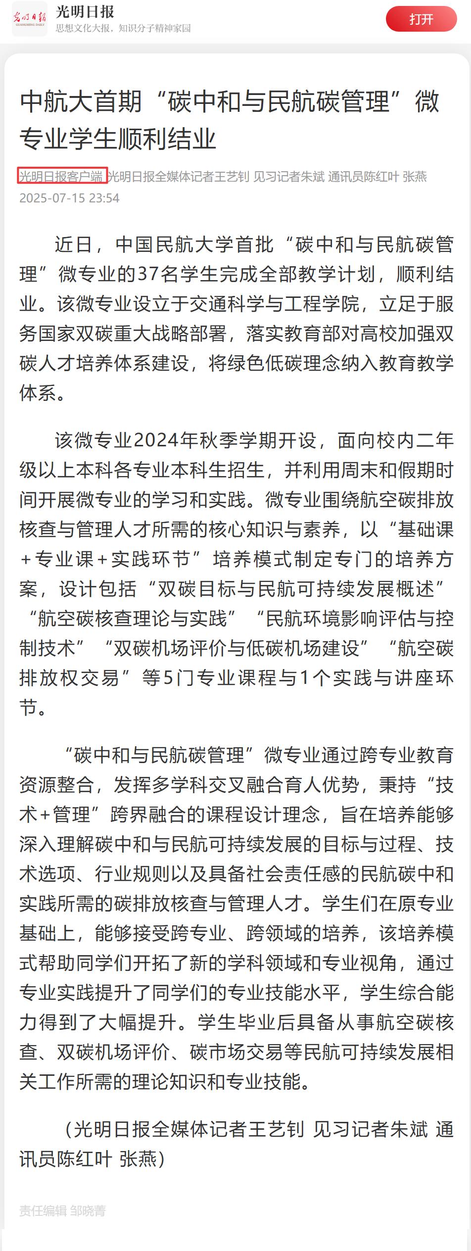 2025年7月16日 《光明日报》客户端: