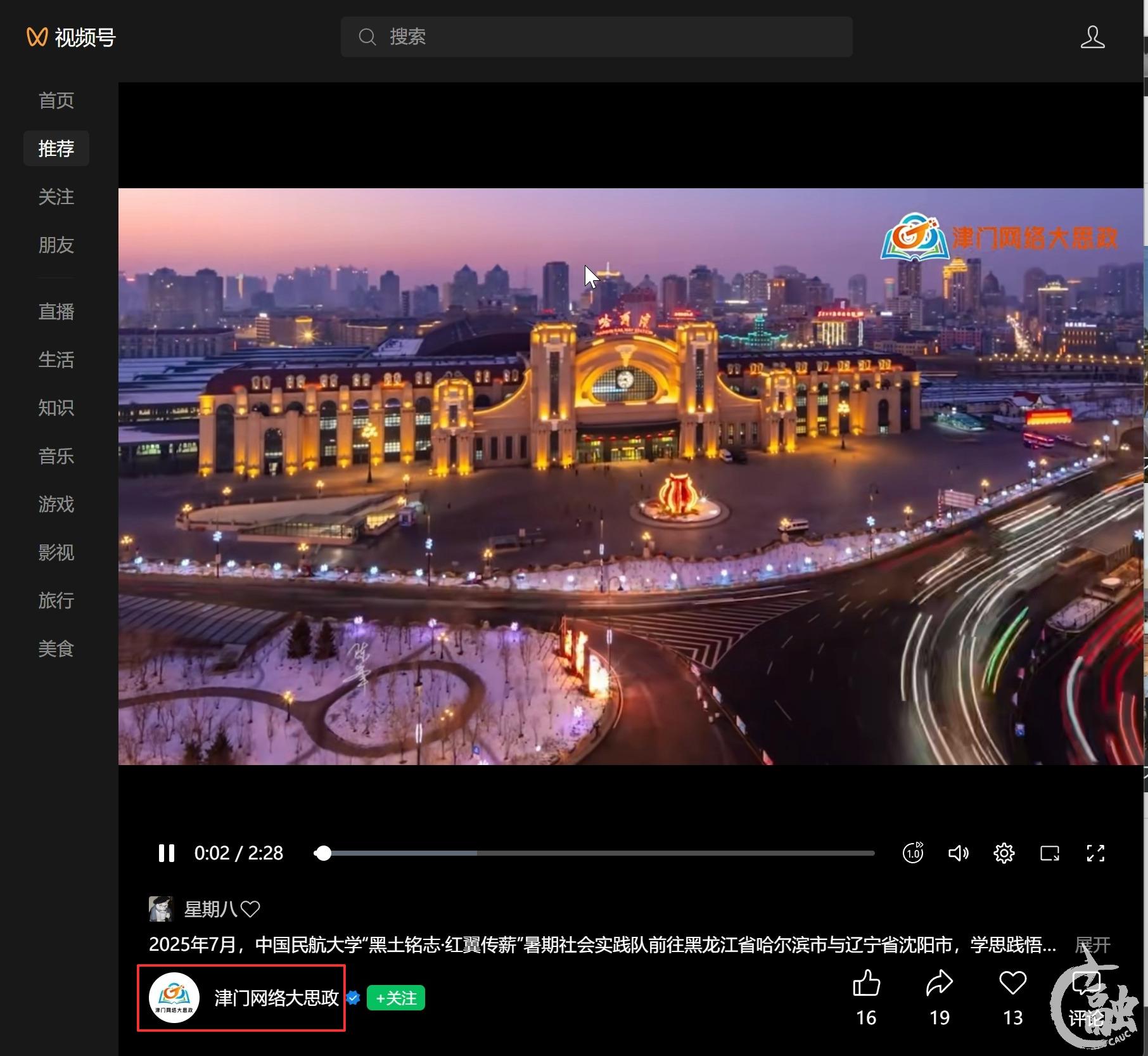 2025年8月1日 《津门网络大思政》微信视频号: