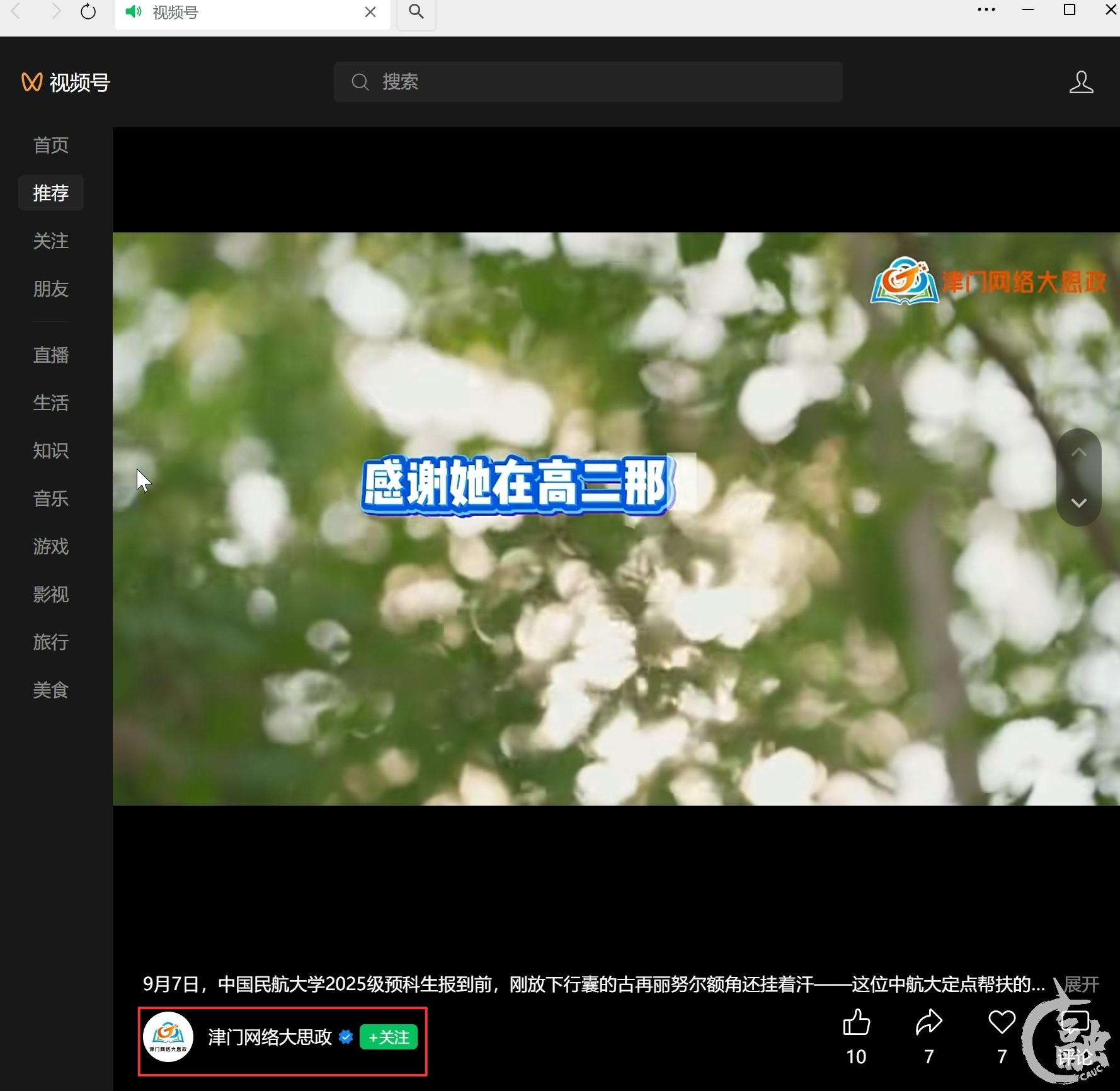 2025年9月8日 《津门网络大思政》微信视频号:
