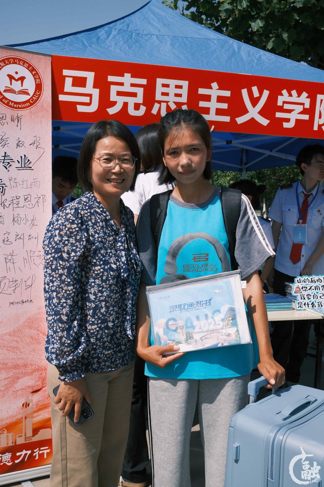 “你考到中国民航大学来了,太棒了!老师真为你高兴!”看到古再丽努尔,马克思主义学院思政课教师邢军动情地说。作为一名生于新疆、长于新疆的儿女,邢军在2023年跨越四千多公里,赴新疆策勒县第一中学挂职德育副校长,开展为期半年的驻疆帮扶工作。她用自己30年来积累的教学经验回馈家乡,并在策勒一中与古再丽努尔结下了师生之缘。“想不到你还留着我给你们讲课的照片,能够在中国民航大学和你再次相聚,我太激动了。希望你在这里继续努力学习,为策勒的学弟学妹们作榜样,鼓励他们考入理想大学。”