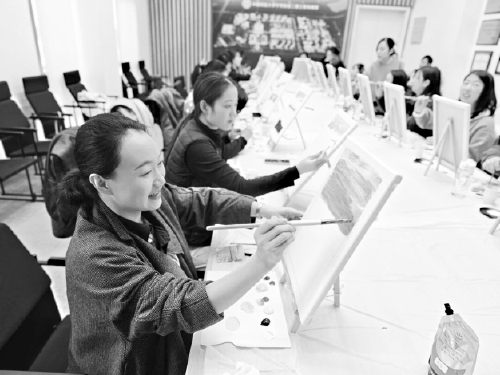 近日,中国民航大学工会开展“一沙一画一世界”创意肌理画手作活动。在老师介绍并演示肌理画的创作过程后,参与活动的女教职工亲手尝试,发挥创意,在画布上自由表达,完成了一幅幅独具个性的肌理画作品。