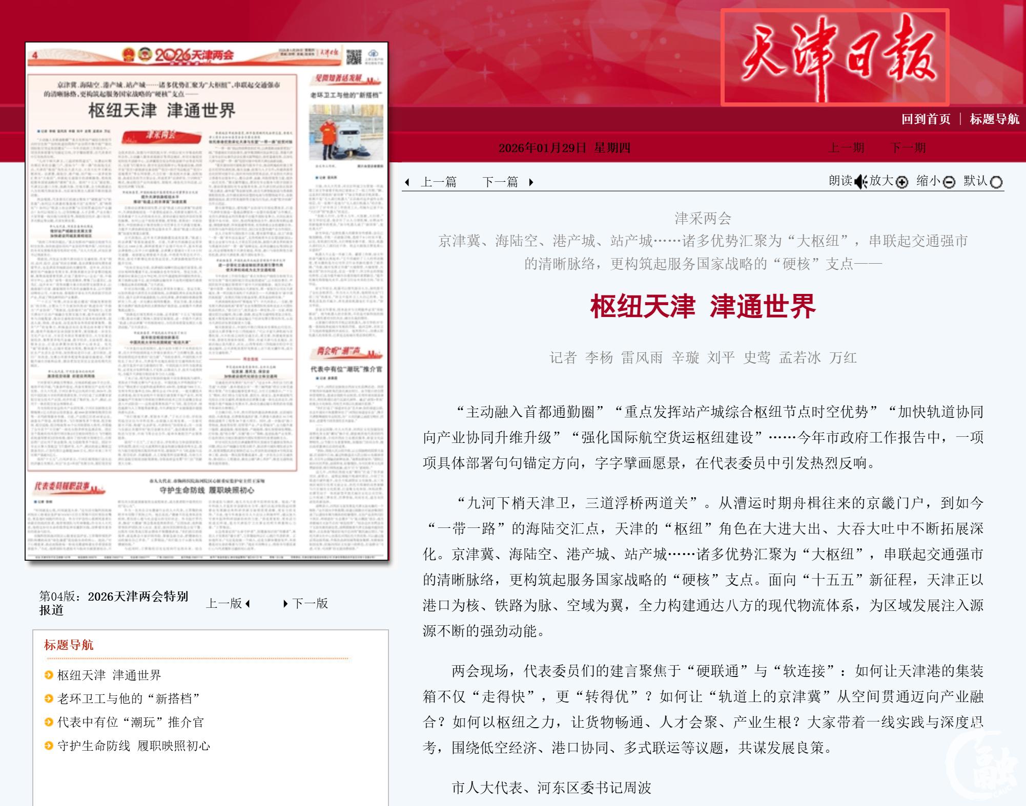 《天津日报》第04版头条:枢纽天津 津通世界