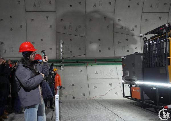 当日的体验之旅,从京滨城际铁路项目隧道工程施工现场拉开序幕。巨大的工程机械平稳运转,先进的施工技术精准落地,严格的质量管控贯穿全程——留学生们驻足观摩、俯身细看,不时举起手机记录,眼中满是惊叹与好奇。当图片中抽象的“中国基建”变成眼前轰鸣的机械、坚实的隧道、标准化的工序,这份零距离的冲击,让他们真切感受到中国基建“速度与激情”背后的科技实力与工匠精神。