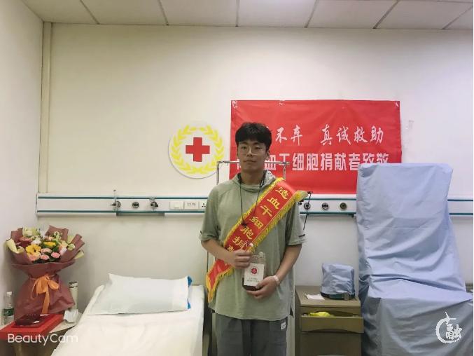5月20日,曾2次献血、赴青海支教的志愿者小赵露出甜甜的微笑,在这个特殊的日子里,他顺利捐献125毫升造血干细胞混悬液,兑现2019年4月26日报名捐献的承诺,隔空为一位3岁的血液病患儿奉献大爱,唤起新生。