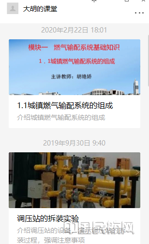 中国民航网 通讯员彭稚超 报道:“大胡的课堂”是机场学院胡艳娇老师出于辅助教学、为学生提供学习资料的初衷所创建的一个公众号平台。在平台上有学生要学的《燃气输配》《输气管道》等课程的学习资料和视频课程。因为公众号有明确的分类界面,所以学生们查找资料就非常方便,使用体验非常不错,平常会在这个平台进行自主学习。“大胡的课堂”是学生的备用之选,如果学习通等其他上课软件系统崩溃了,“大胡的课堂”可以保障学生的线上学习顺利完成。