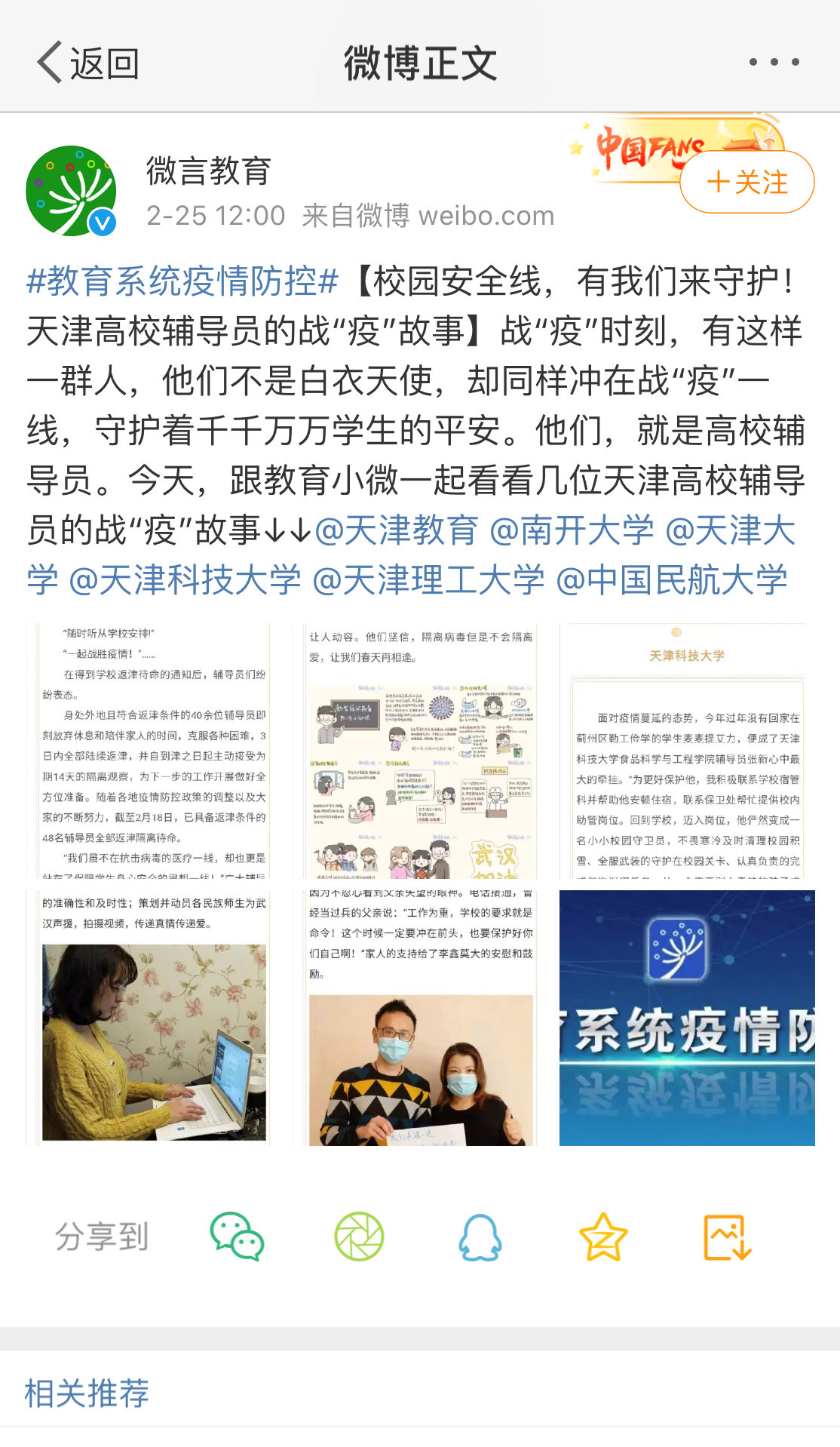 #教育系统疫情防控#【校园安全线,有我们来守护!天津高校辅导员的战“疫”故事】战“疫”时刻,有这样一群人,他们不是白衣天使,却同样冲在战“疫”一线,守护着千千万万学生的平安。他们,就是高校辅导员。今天,跟教育小微一起看看几位天津高校辅导员的战“疫”故事↓↓@天津教育 @南开大学 @天津大学 @天津科技大学 @天津理工大学 @中国民航大学