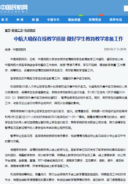 中航大确保在线教学质量 做好学生教育教学准备工作