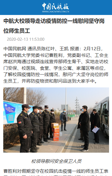 中航大校领导走访疫情防控一线慰问坚守岗位师生员工