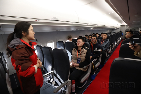 中国商飞工作人员向中航大学生介绍ARJ21-700(庄锦涛/摄)