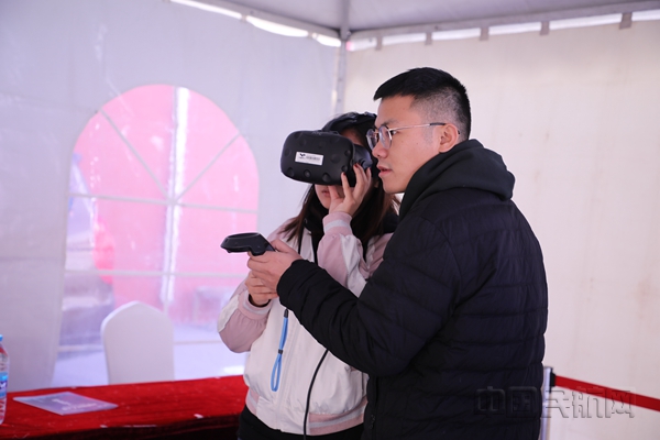 中航大学生体验飞机模拟驾驶(李悦君/摄)
