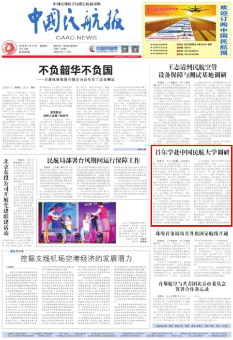 《中国民航报》头版:吕尔学赴中国民航大学调研
