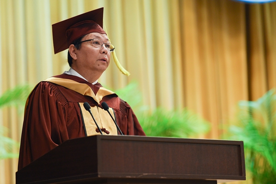 第三,希望你们做好从个体到家庭的转变,坚守传统的道德与文化。毕业了,期待你们带着第一笔劳动所得回家先向父母报告,随后几年,同学们也会组建自己的家庭,家庭角色也在不断丰富,但始终不能忘记孝敬父母。担起家庭的责任,传承慈爱和关怀,延展中国优秀的文化。