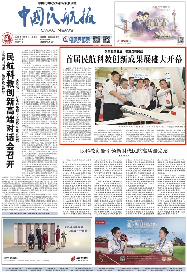 2018年6月15日《中国民航报》头版: