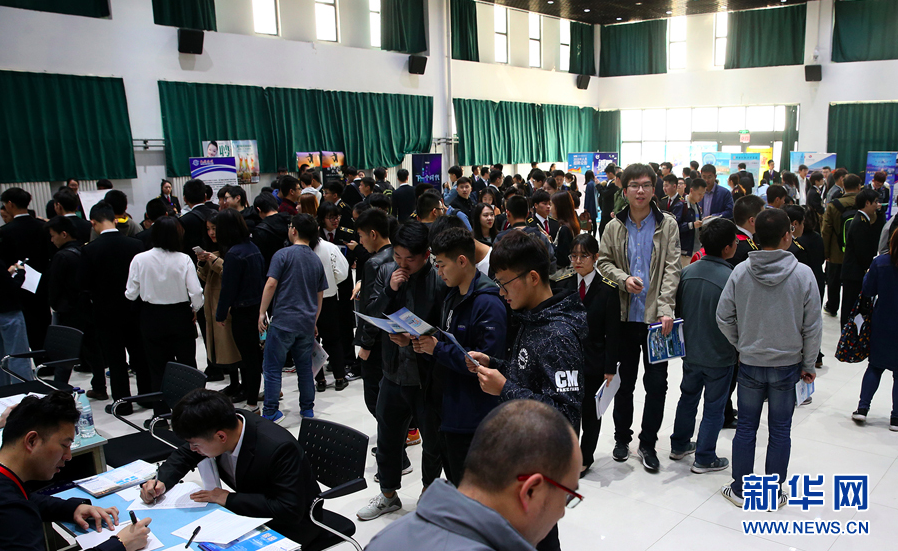 3月31日拍摄的中国民航大学2018年春季校园双选会现场。新华网发(庞杰 摄)
