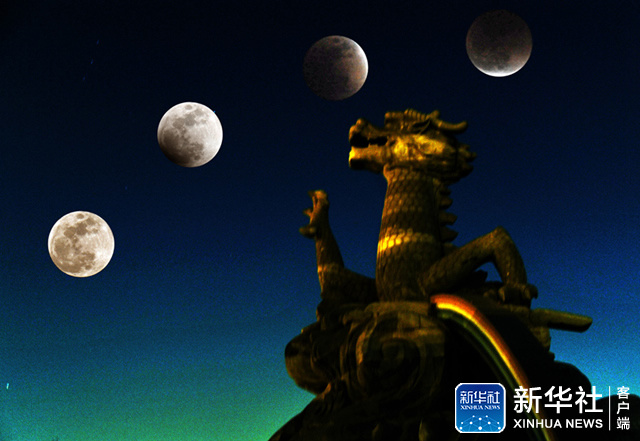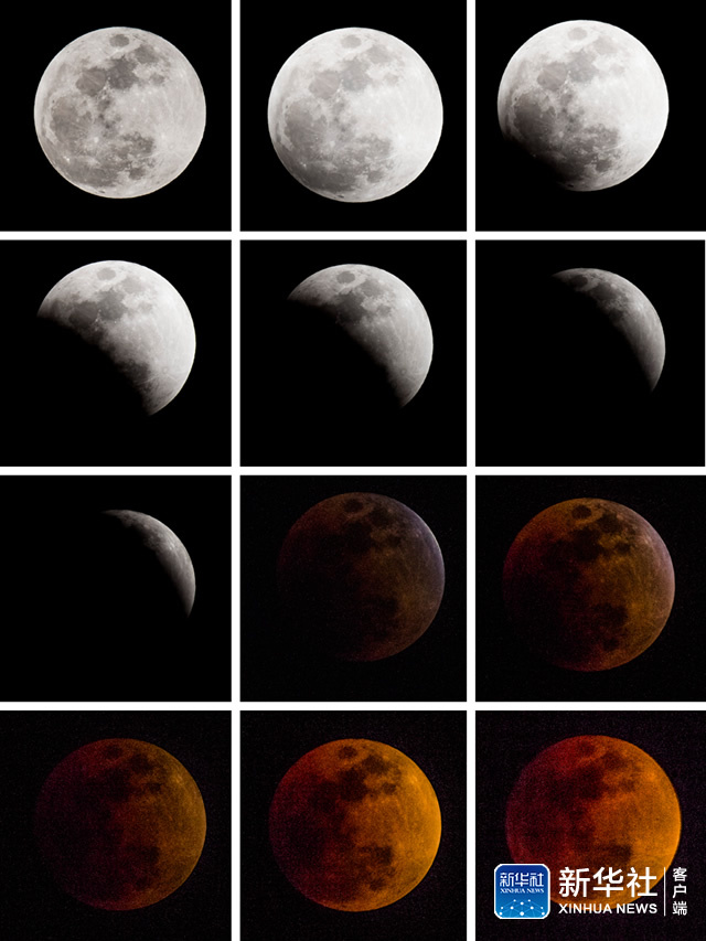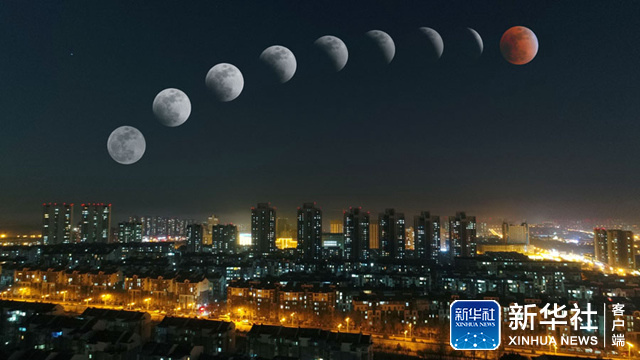 ↑这是1月31日在天津拍摄的月亮“初亏”到“复圆”的过程(计算机合成图片)。(新华视觉 周勤隆 摄)
