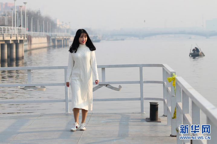 12月2日,活动中,师生在海河附近进行人像外拍活动。新华网发(庞杰 摄)