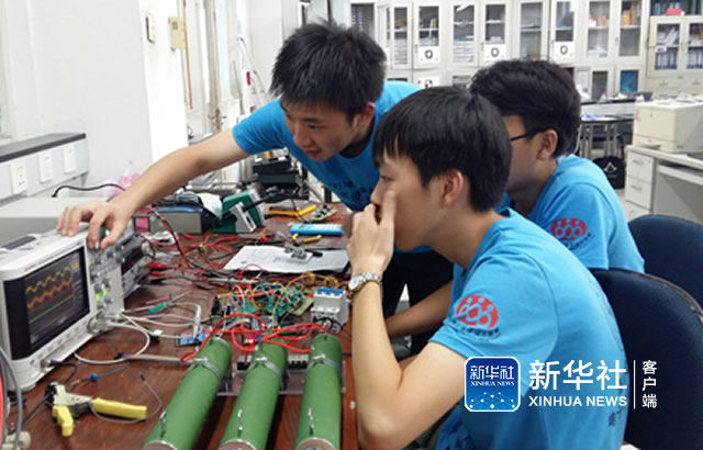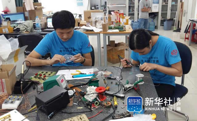 图为中国民航大学学生在2017年全国大学生电子设计竞赛中参加比赛。