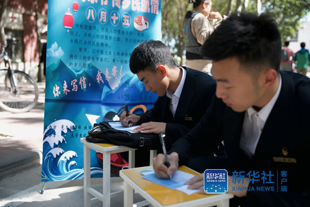 目前,中国民航大学大学生记者团组织举办“中秋寄家书,传梦民航情”品牌活动。图为学生在活动现场书写家书(王冠根)