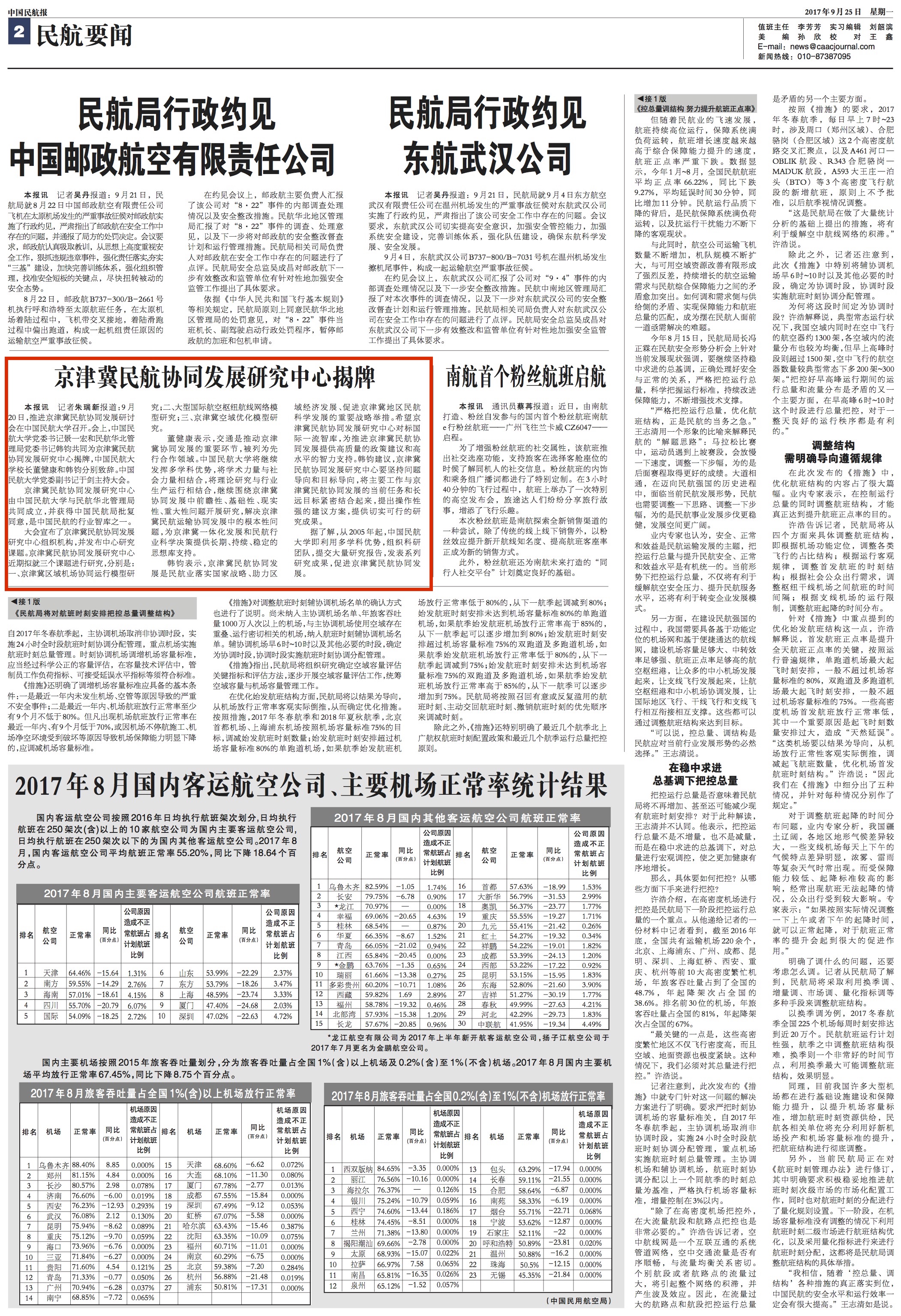 2017年9月25日《中国民航报》2版: