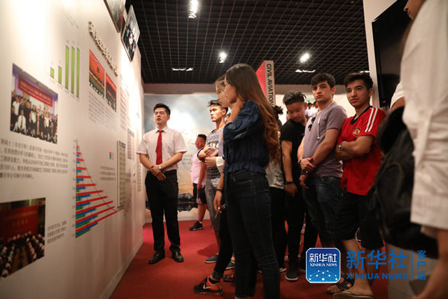 9月15日,中国民航大学举行2017级留学生开学典礼,图为25名留学生参观中航大校史馆。(张琪)