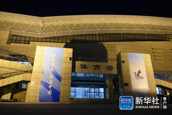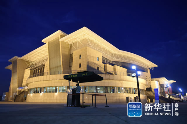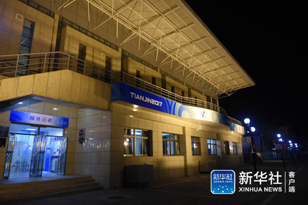 ↑8月7日,中国民航大学体育馆灯光开启。8月7日至10日,第十三届全运会柔道项目在中国民航大学体育馆举行。期间,中国民航大学体育馆将在夜间开启灯光,献礼全运会。杨其锴 拍摄