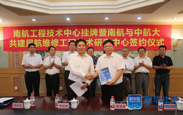 7月21日,中国民航大学与南方航空公司联合共建的“南航工程技术中心”揭牌仪式在南航机务工程部沈阳飞机维修基地举行。中国民航大学校长董健康与南航股份公司副总经理、总工程师李彤彬代表双方揭牌,并在该中心的基础上,签约共同筹建“民航维修工程技术研究中心”。