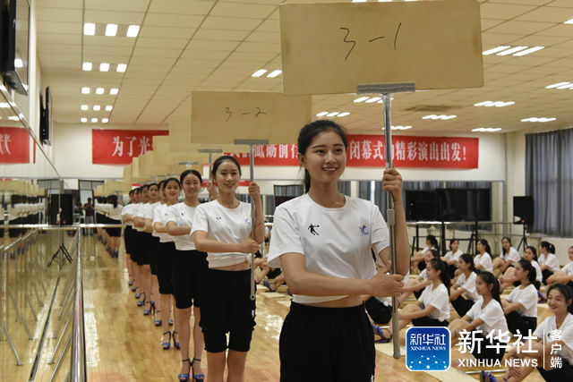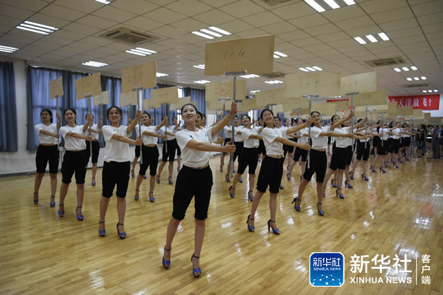 ↑7月14日,在中国民航大学,第十三届全运会仪式引导员进行举牌训练。