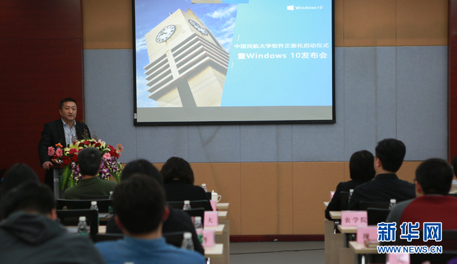 3月28日,中国民航大学与天津市教育信息化协会联合主办“中国民航大学软件正版化启动仪式暨Windows 10发布会”。新华网发(陈红叶 摄)
