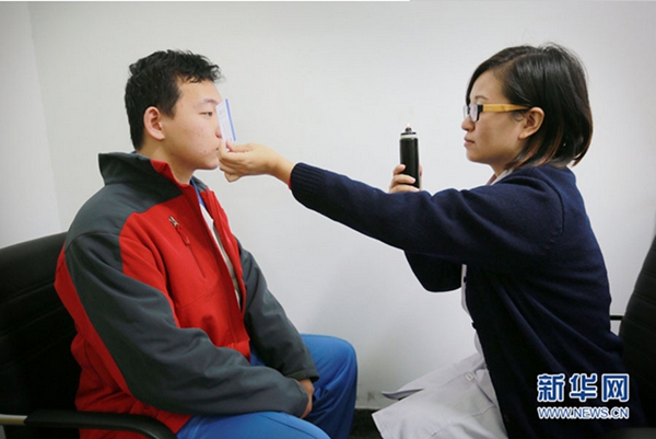 11月12日,在中国民航大学北院卫生院,报名学生正在接受初检。新华网发(王晓明 摄)