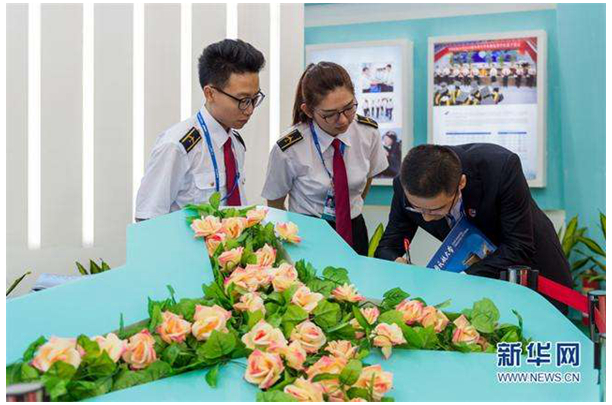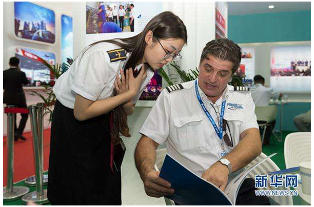 11月1日,国际参展单位来到中国民航大学咨询合作事宜。(新华视觉 陈红叶 摄)