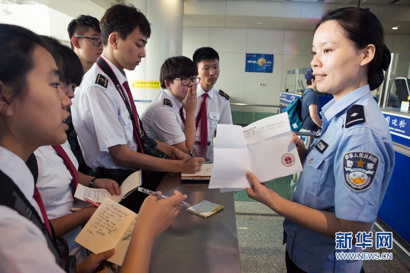 7月14日,中国民航大学大学生记者团暑期社会实践队赴南疆边检站调研,船舶负责人与民警配合为学生们讲解海港边检。新华网发(陈红叶 摄)7月14日,中国民航大学大学生记者团暑期社会实践队赴南疆边检站调研,调查市民对边检的了解程度。新华网发(陈红叶 摄)7月14日,中国民航大学大学生记者团暑期社会实践队赴南疆边检站调研,值班民警为学生们讲解机场边检常识以及相应的法律法规。新华网发(陈红叶 摄)7月14日,中国民航大学大学生记者团暑期社会实践队赴南疆边检站调研,值班民警为学生们讲解机场边检常识以及相应的法律法规。新华网发(陈红叶 摄)