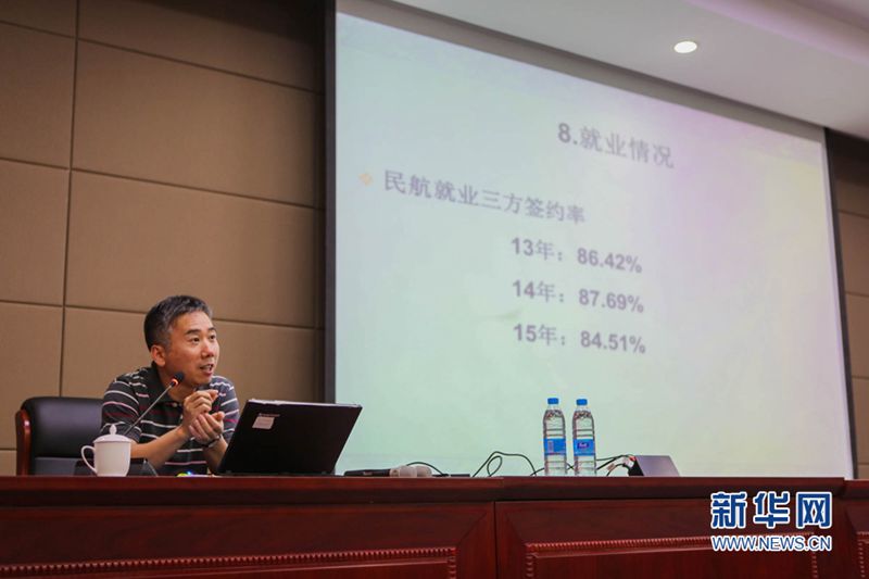 6月16日,考生和家长向中国民航大学校园开放日学生志愿者咨询。新华网发(陈红叶 摄)6月16日,在中国民航大学校园开放日宣讲会上,学院负责人向家长和考生介绍学院情况。新华网发(陈红叶 摄)