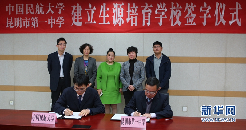 3月24日,中国民航大学与昆明市第一中学建立生源培育学校签字仪式在中国民航大学学术交流中心举行。双方对所在学校的校园特色和办学思想进行介绍交流,表示希望通过合作促进中国民航产业的发展。