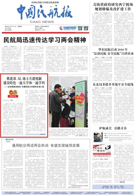 《中国民航报》1版:推进部、局、地方共建机制 建设特色一流大学和一流学科——访全国政协委员、中国民航大学副校长吴仁彪