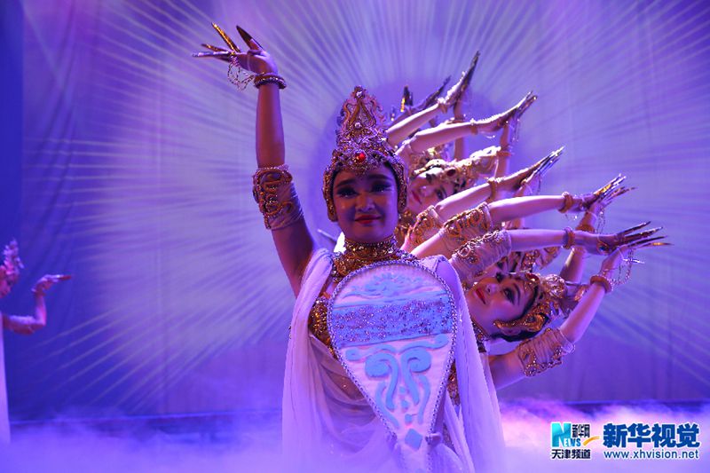 在庄严肃穆的敦煌大佛的背景中,气势恢宏的,最具中国民族舞风韵的“千手观音”首先亮相,随后,婀娜多姿的”波斯舞”敦煌壁画里“飞天”、风情万种的“反弹琵琶”等曼妙舞姿在舞台上一一呈现。近两个小时的演出,唯美的舞姿为中国民航大学师生带来了一场视觉盛宴。