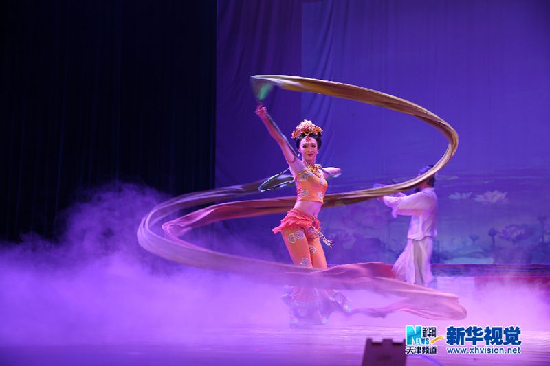 新华网天津10月31日电  10月30日,来自甘肃省歌舞剧院的艺术家们,在中国民航大学礼堂用唯美肢体语言,上演一场中国经典舞剧《丝路花雨》,1000余名师生观看了演出.