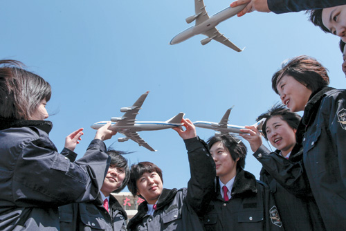 飞行员的选拔标准近乎苛刻,能够通过层层淘汰进入学校的女孩儿们,却只是进入到了飞行的第一关。入学伊始,准“女飞”们就享受到了不一样的待遇。她们必须剪掉长发,以便适应准军事化管理的集体生活。在学校里,她们每天早上6时起床,出操、吃饭都要穿着制服集体行动。她们穿梭在图书馆、教室、自习室和体育场,学习飞行基础理论、英语以及5公里长跑,日复一日地坚持着。