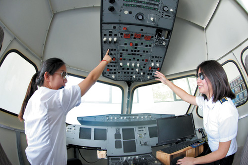 飞行中强烈的光照和紫外线晒得脸发痛,飞机降落时仿佛“一头栽下去”的感觉让人心惊,飞行事故的模拟练习好像“死里逃生”……在飞行训练中,她们要学习各种飞行技巧,解决各种出现的问题。面对这些最高精尖的飞机,她们要认识近千个按钮的功能,熟记厚厚的飞行手册与规则,耐得住寂寞,集中精神。