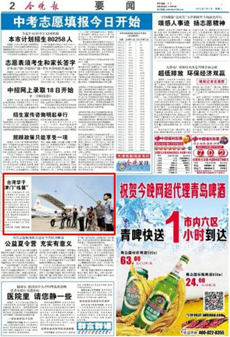 《今晚报》2版:台湾学子 津门“练翼”