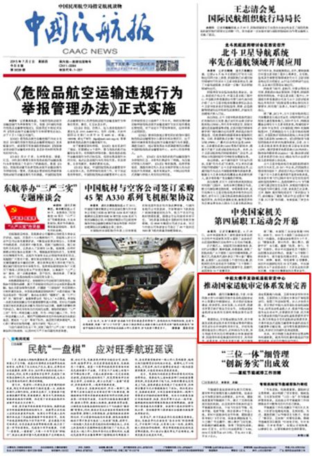 《中国民航报》1版:中航大携手发动机适航审定中心推动国家适航审定体系发展完善