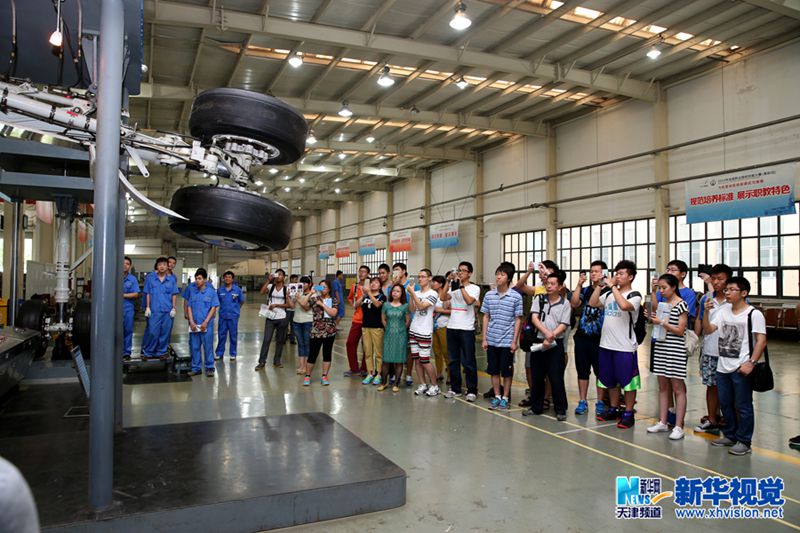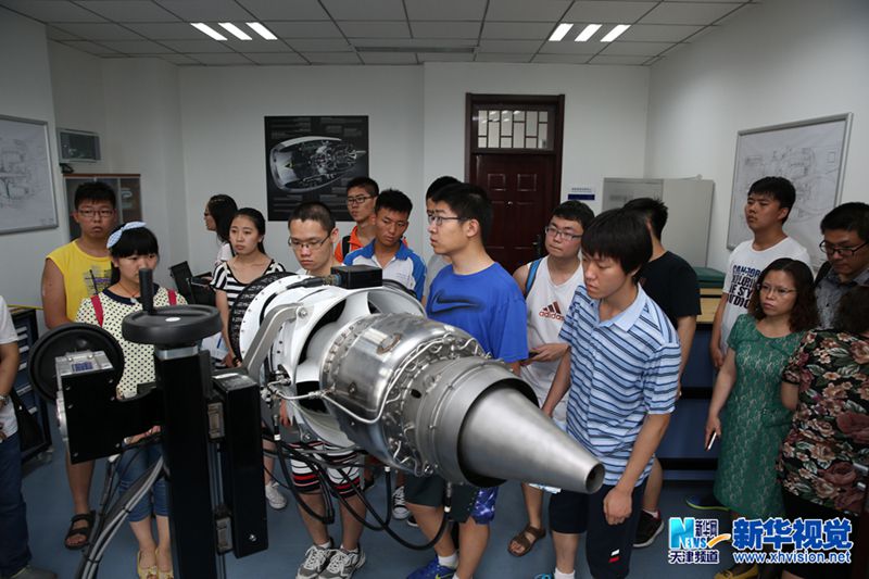 6月25日,考生及家长参观中国民航大学工程训练中心飞机发动机教研室