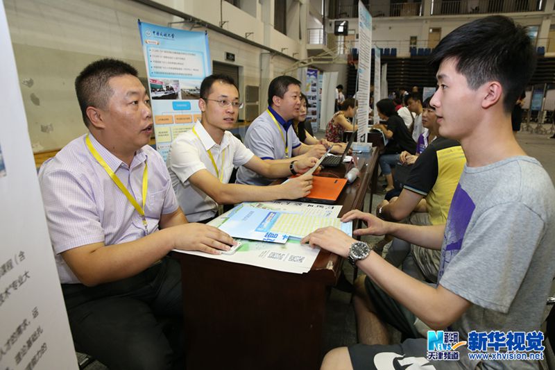 6月25日,在中国民航大学南校区体育馆,考生向招生办老师咨询
