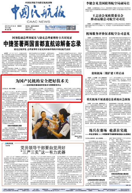 《中国民航报》1版转2版:为国产民机的安全把好技术关