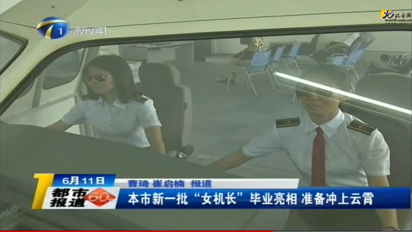 6月11日天津电视台新闻频道《都市报道60分》报道学校新一批“女机长”毕业亮相 准备冲入云霄。