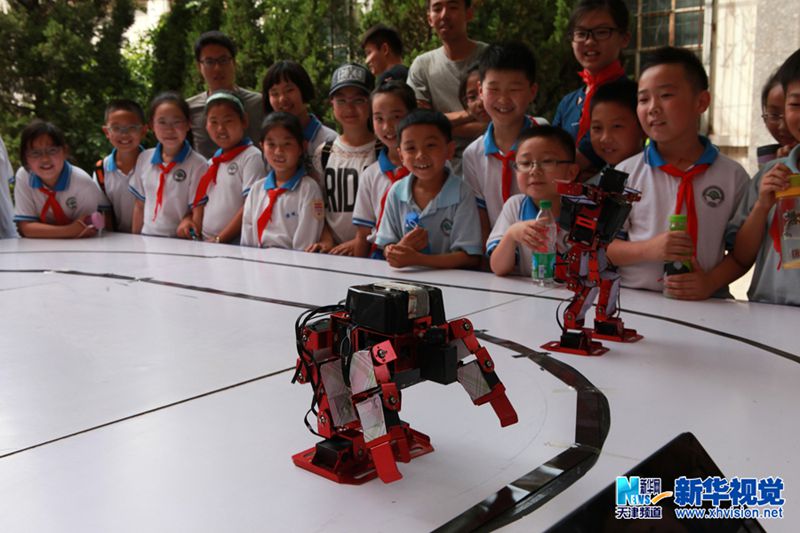6月2日,机器人研究所为师生代表展示机器人做广播体操