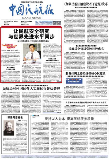 《中国民航报》头版头条:让民航安全研究与世界先进水平同步——记全国模范教师、中国民航大学教授孙瑞山