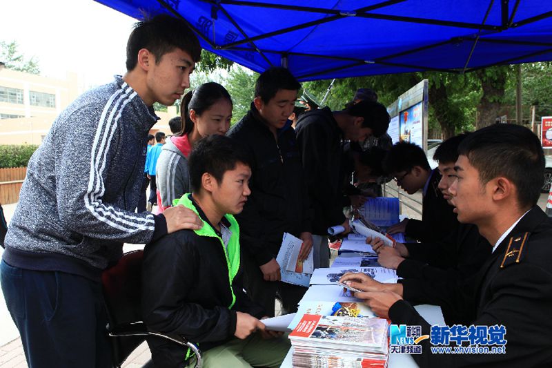 新华网天津5月11日电  5月9日,为期两天的大学生征兵宣传报名活动在中国民航大学展开。目前,报名登记人数55人。据了解,2014年中国民航大学有17名同学在校入伍,20名同学毕业后考取士官,共计37人。