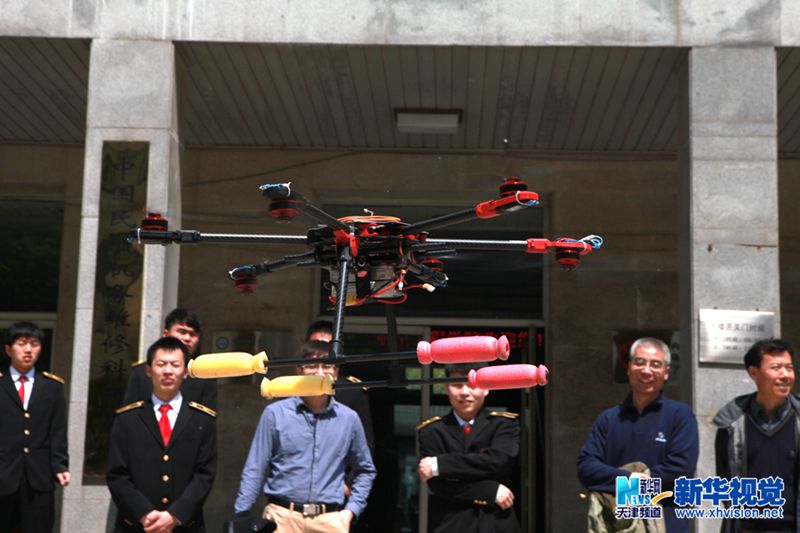 4月20日,彭建的学生团队在安装调试无人飞机