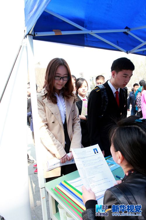 3月28日,两名应届毕业生准备参加面试3月28日,一名应届毕业生在与用人单位进行交流3月28日,不少应届毕业生在等待报名